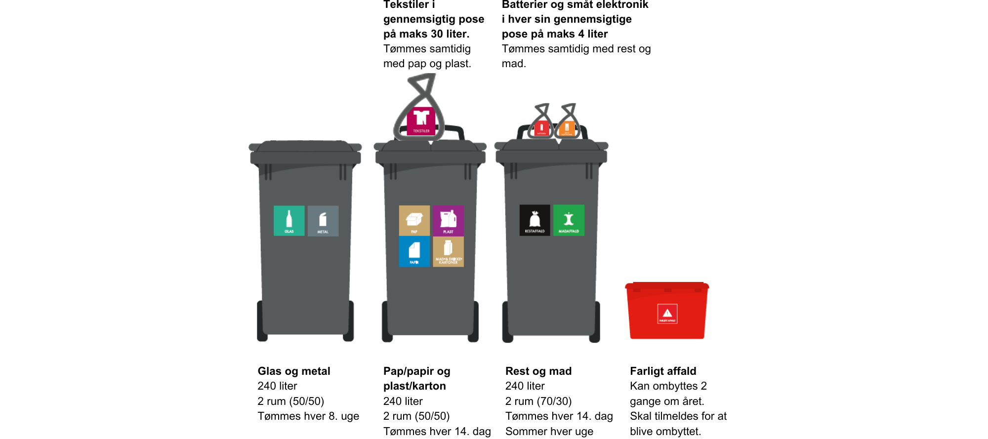 • Tilmelde dig besked-service, så du automatisk får besked, når dine beholdere skal tømmes