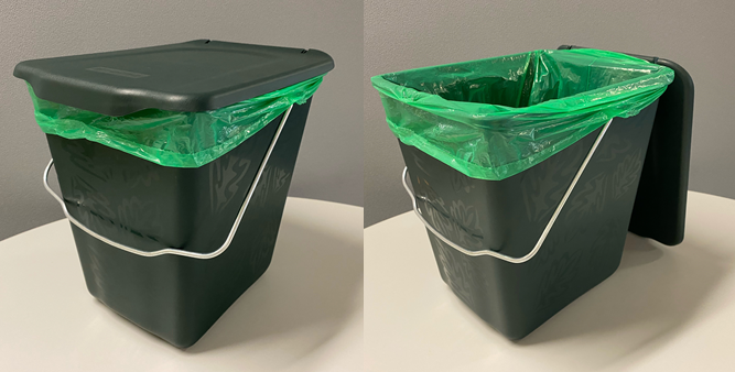 Ønsker du en grøn køkkenspand til madaffald, kan den hentes på en af kommunens tre genbrugspladser.